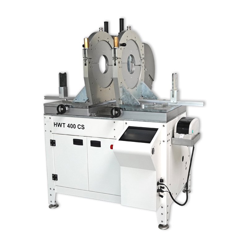 HÜRNER's HWT 630 CS  servo-operated workshop system is the end-to-end transformation of worksite technology into workshop systems. The system has been developed in compliance with the so-called machinery directive 2006/42/EC as amended and allows making segments, tees, Y pieces and crosspieces in workable dimensions from O.D. 160 through 630 (500) mm | 6" - 24 (20)". The welding system is set on a welded or a screwed-fast, heavy-duty, no-warp support frame and the bearings on which move both the horizontally traveling carriage and the heating element and facing tool assembly, are designed as precision-engineered and heavy load-bearing trapeze-shaped guides with precision-matched runner blocks. It goes without saying that all parameters that are critical for a high-quality and reproducible welded joint are monitored throughout the process and saved to the memory of the system, which can hold up to 10,000 reports. Furthermore, all CNC systems are equipped with a USB interface to enable downloading the welding reports in the PDF format to a USB stick or sending them to the management database in the HÜRNER DataWork Professional format. It is also possible to label a joint immediately for its quality by printing on plastic foil an indelible label tag with the available tag printer that will identify the fitting.